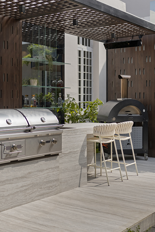 Este ambiente —creado por Kathy Cárdenas, Caroline Feldman y la paisajista Marcia Lenz— interpreta con sutileza un nuevo arte de vivir, donde los límites entre lo interior y lo exterior se desdibujan a favor de una experiencia más sensorial, libre y contemporánea.